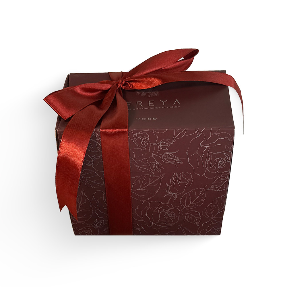 A beautiful gift set including Rose Diffuser, Rose Redolence, and a Big Rose Concrete Candle, elegantly packaged.